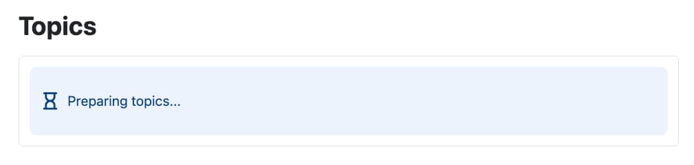 Jt.info("Preparing topics...").icon(":hourglass:")