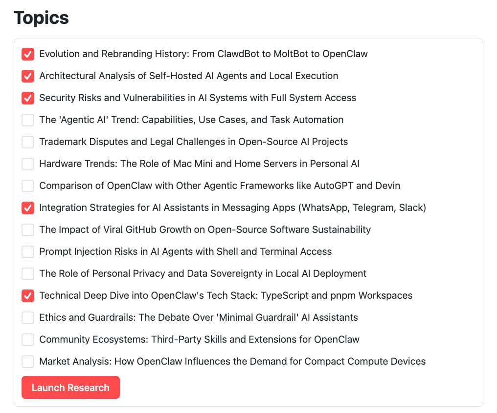Note: Full source code of this deep research frontend on GitHub.