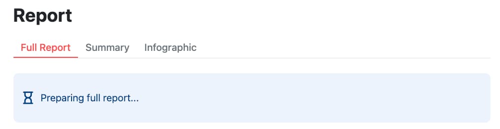 In this part of the interface, you’ll notice the use of tabs, to separate the full report, the summary, and the infographic.