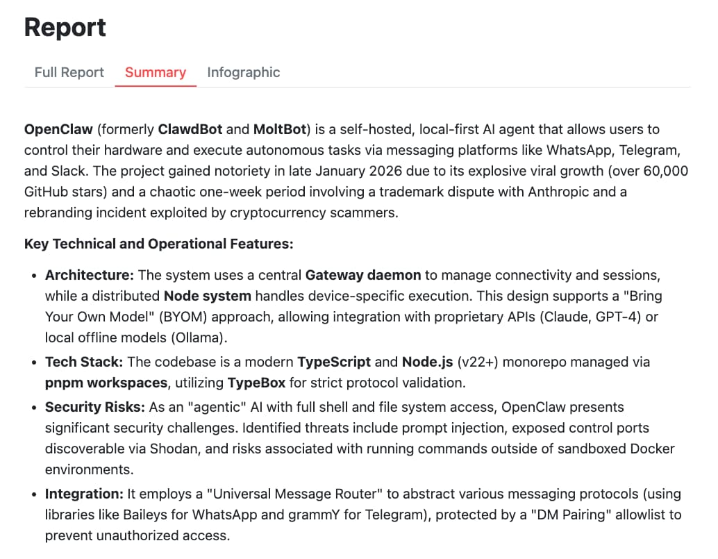 - Once the final report is ready, Gemini 3 Pro creates a solid summary.